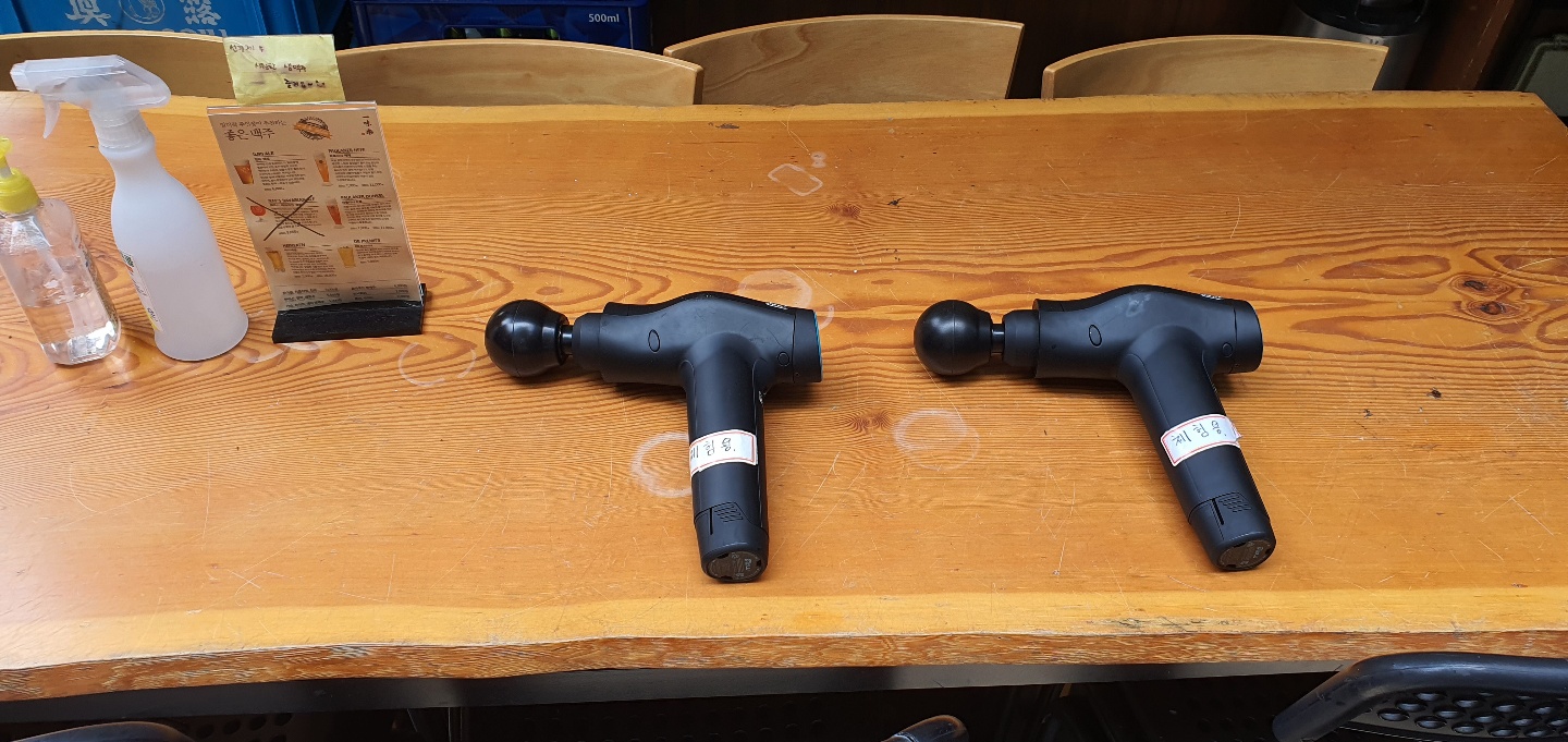 고객 웨이팅 공간에 마사지건은